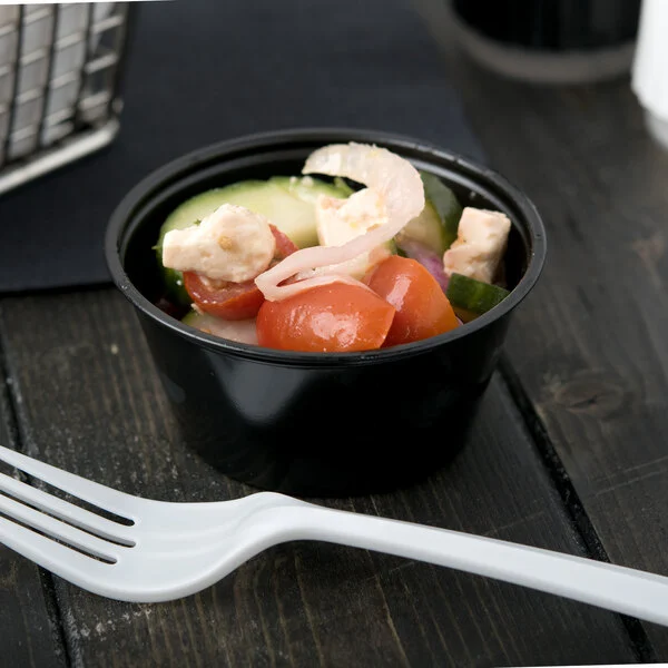 The Soufflé Cup offers a stylish and practical solution for serving condiments, sauces, dips, and small side portions. Made from durable polypropylene, this black portion cup is ideal for takeout, catering, and dine-in applications where presentation and performance matter.