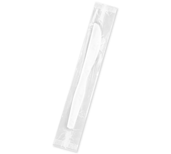 These heavyweight white plastic knives are designed for durability and convenience in foodservice environments. Individually wrapped for sanitary handling, they are ideal for restaurants, catering services, and take-out establishments. The sturdy construction ensures strength and resistance to bending, making them suitable for a variety of foods, both hot and cold. The sleek white color offers a clean, professional appearance, while the individually wrapped design ensures easy and hygienic access for customers and staff. These disposable knives provide an efficient solution for maintaining cleanliness and hygiene in high-volume foodservice settings.